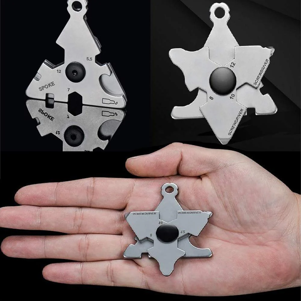Überlebensausrüstung: Unverzichtbares Produkt für jeden Tag. Einzigartiges zwei-dreieckiges Design, frei zu drehen in ein sechseckiges Werkzeug für verschiedene Funktionen. Mit einem Loch für das Schlüsselband und Schlüsselring, das sich leicht mit einem Schlüsselring befestigen lässt, sodass Sie das Multifunktionswerkzeug jederzeit griffbereit halten und bereit für jeden Notfall. Ein beliebtes EDC Handwerkzeug für drinnen und draußen.
