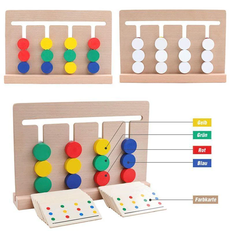 Eltern können nach dem Zufallsprinzip ein Stück Farbkarte auswählen. Kinder sollten die Farbe auf dem Brett entsprechend der Farbkarte verschieben.