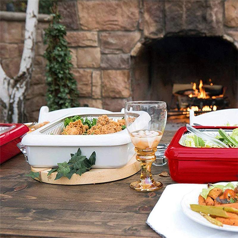 Die Alufolie Aufbewahrungsbox ist der perfekte Begleiter zur Einweg-Folienpfanne. Öffnen Sie einfach den Rahmen und stellen Sie die mit Ihrem Lieblingsgericht gefüllte Pfanne (kühlen Sie heiße Lebensmittel auf 30 Grad ab, bevor Sie sie in Ihre Tin Foil Crisper geben). Wenn es Zeit zum Servieren ist, nehmen Sie einfach den durchsichtigen Deckel ab und legen Sie ihn unter Ihren Zinnfolien-Crisper. Sie müssen nicht mehr nach Ihrem Deckel suchen.