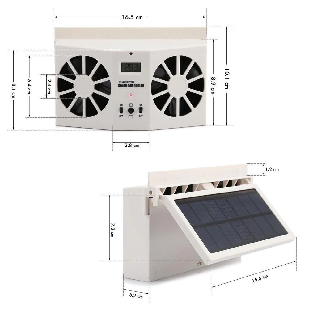 - Zwei Energieoptionen: Dieser Autolüfter mit äußeren Sonnenkollektoren, Doppelkanal und Doppelmotor-Design verbessert die Abgasgeschwindigkeit effektiv. Solar- und Batterieschaltersteuerung können die separat verwendete Solarbatterie steuern. Wenn Sie den Akku nicht benutzen, können Sie sich direkt auf Sonnenenergie verlassen, um Sonnenlicht in Strom umzuwandeln, damit der Lüfter funktioniert.